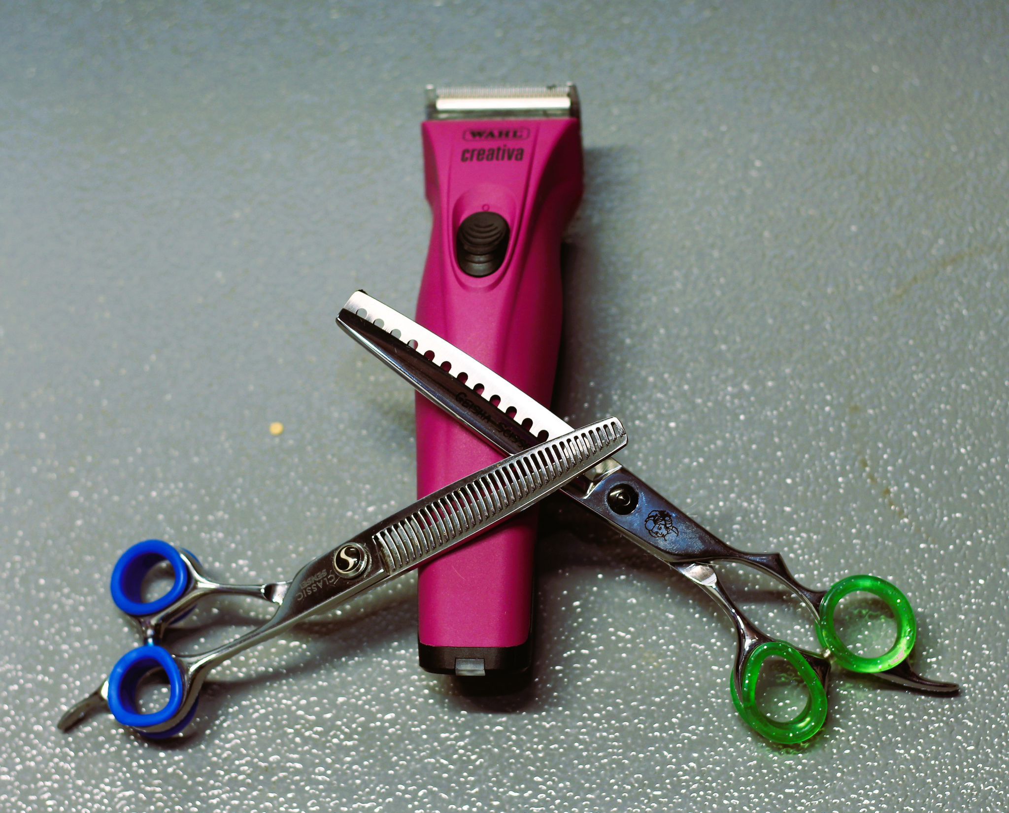 Dit kan alleen bij de schone, droge vacht die volledig klitvrij is. Hierbij wordt de vacht ingekort door middel van een schaar in de gewenste lengte.